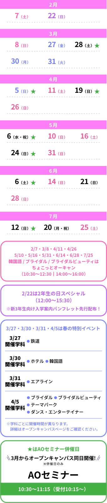早く進路を決めたい、と参加した春のイベント。式場見学でブライダルの魅力を知り、親身な先輩に憧れて入学を決めました。 入試は6月の第1回AOでエントリー。事前にセミナーを受けたおかげで、面談もリラックスして臨めました。