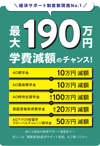 早期特典の「AO特待生奨学金」で学費負担を抑えられたのも、早めに動いて良かったと思う大きなメリットです!